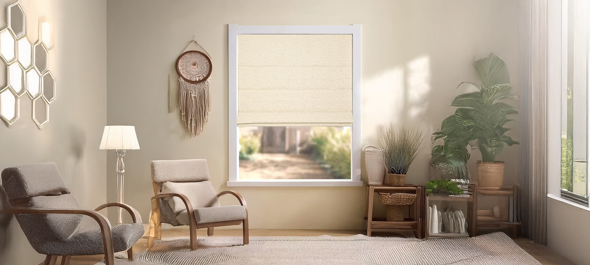 Composite fabric: Shades made with composite fabric hold a crisp, neat shape, making them ideal for Roman shade styles such as plain fold, flat fold, pleated fold, and soft fold. They are not suitable for relaxed styles.