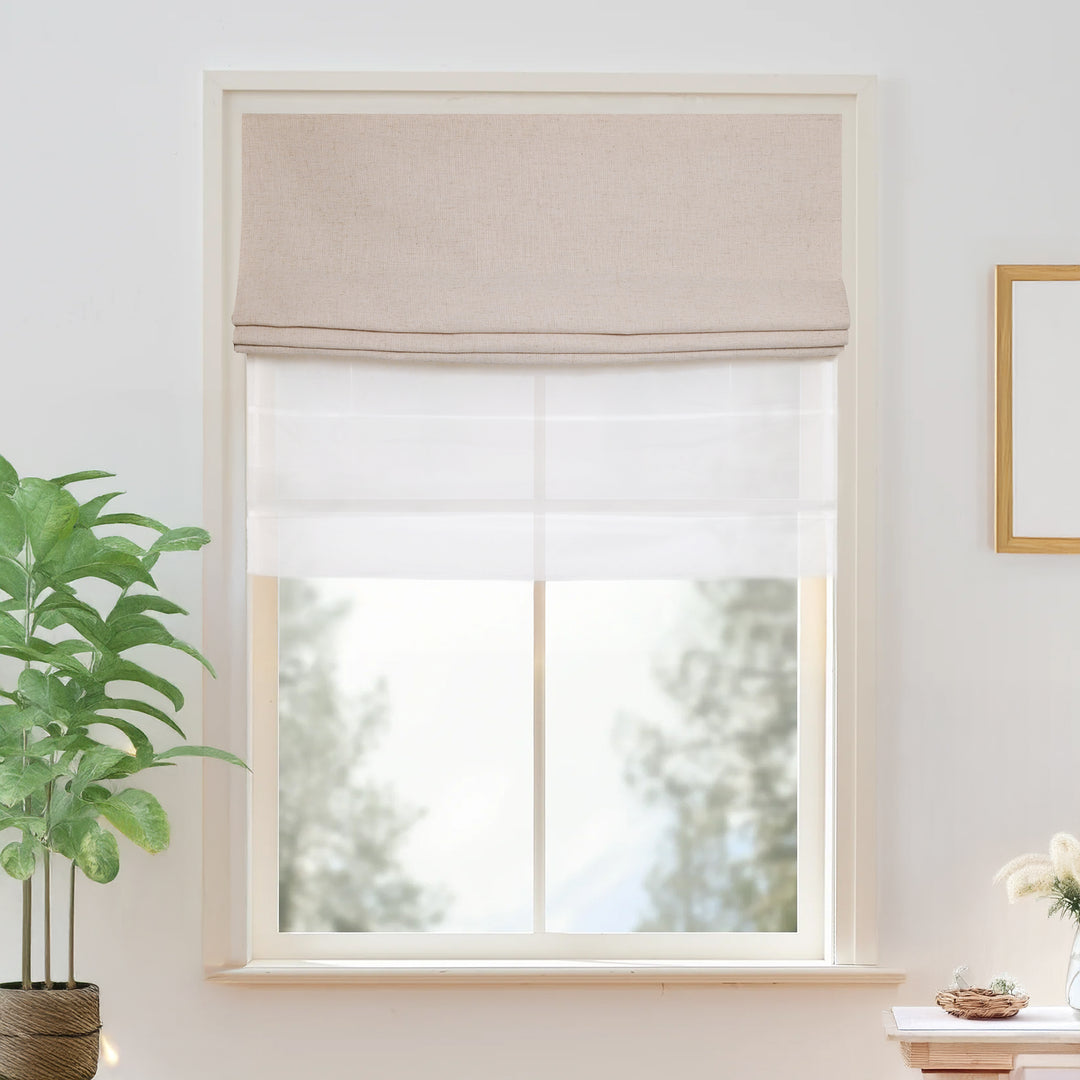 A Day Night Roman Shade combines two layers of fabric in one elegant design — a front layer and a sheer back layer. This dual-layer structure allows you to adjust privacy and light control throughout the day with ease, offering both function and style in a single window treatment.