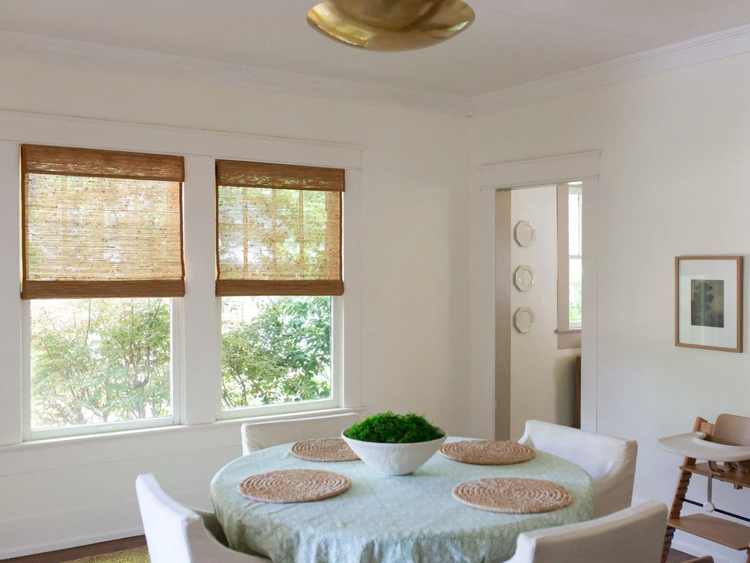 Bamboo shades gently soften natural light, creating warm, calming interiors.