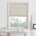 Woven from breathable linen in a soft beige-white hue, the Lily Roman Shade gently gathers into loose, cascading folds for an understated yet inviting look.