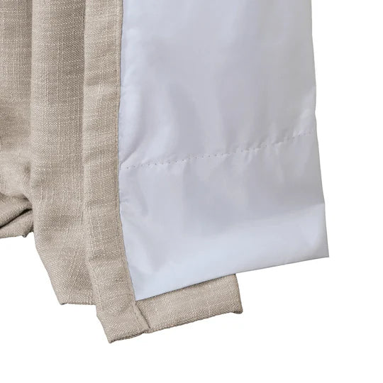 Liner or lining refers to an additional layer of fabric sewn to the back of curtains or shades.
