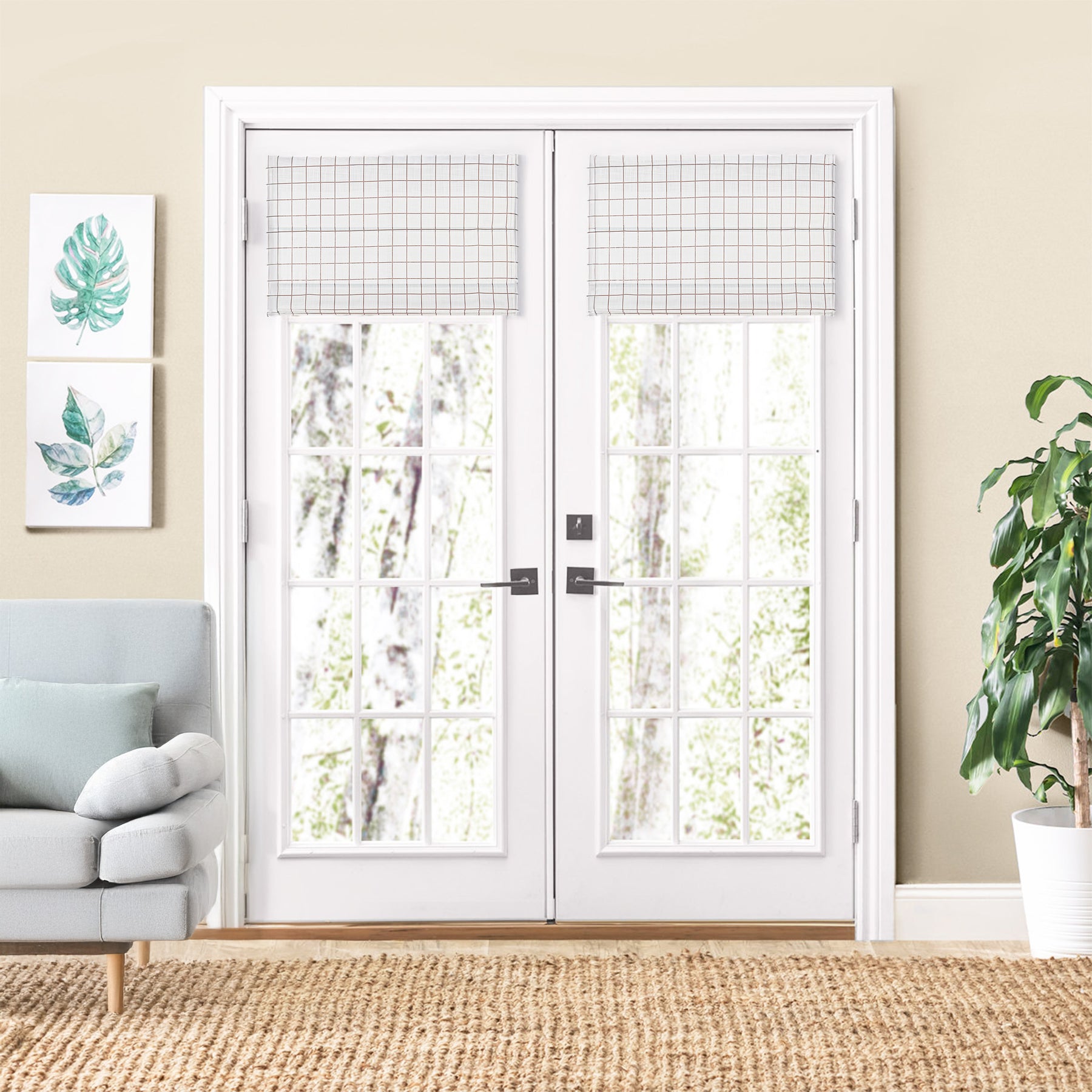 Vivienne Plaid Striped Linen Roman Shades & Blinds for French Door